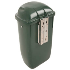 Buitenafvalbak van geïnjecteerd HDPE en corrosiebestendige metalen delen waardoor de bak bestand is tegen rotting, vorst, hitte en vele chemische stoffen. De kap beschermt tegen inregenen en voorkomt inworp van volumineus afval. Voorzien van RVS plaat aan de rand voor het uitdrukken van sigaretten. Eenvoudige en hygiënische lediging d.m.v. driekantslot in de kap. Geschikt voor montage aan wand of paal.