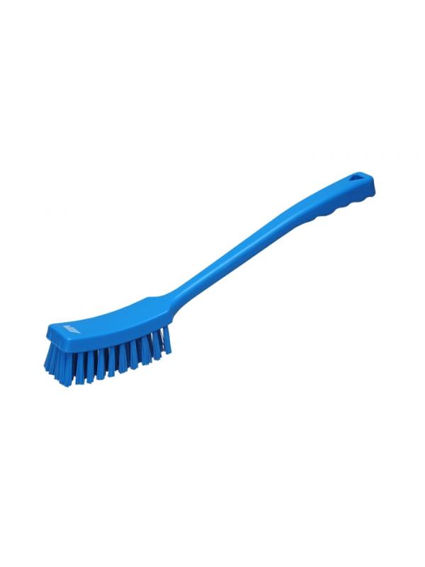 Afwasborstel zuiver polyamide, met ronde kop en witte handgreep.
