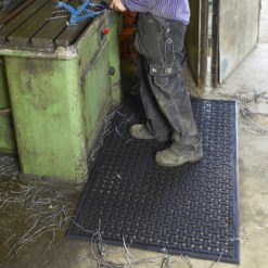 De Comfort Flow mat is een van de meest veelzijdige matten in de industrie. Ze worden geproduceerd uit 100% nitril rubber, zijn bestand tegen chemicaliën, vetten en oliën en kunnen daardoor voor veel verschillende toepassingen worden gebruikt. De afvoergaten in de mat zijn ideaal voor gebruik in natte omgevingen waar vloeistoffen eenvoudig moeten kunnen doorstromen.