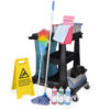 Uitgevoerd met twee diepe tray’s met 6 liter emmers en een grote 18 liter mopemmer met basket welke geschikt is voor de twistmoppen tot 250 gram.. De afvalzakhouder is geschikt voor 120 liter afvalzakken.
